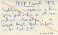JOST Henryk 1957 Zagadnienia historii techniki w ostatnich "Wierchach".