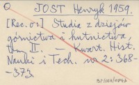 JOST Henryk 1959 Studia z dziejów górnictwa i hutnictwa, tom II.