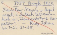 JOST Henryk 1960 Stanisław Staszic o kopalniach i hutach tatrzańskich w "Ziemiorodztwie Krapatów".