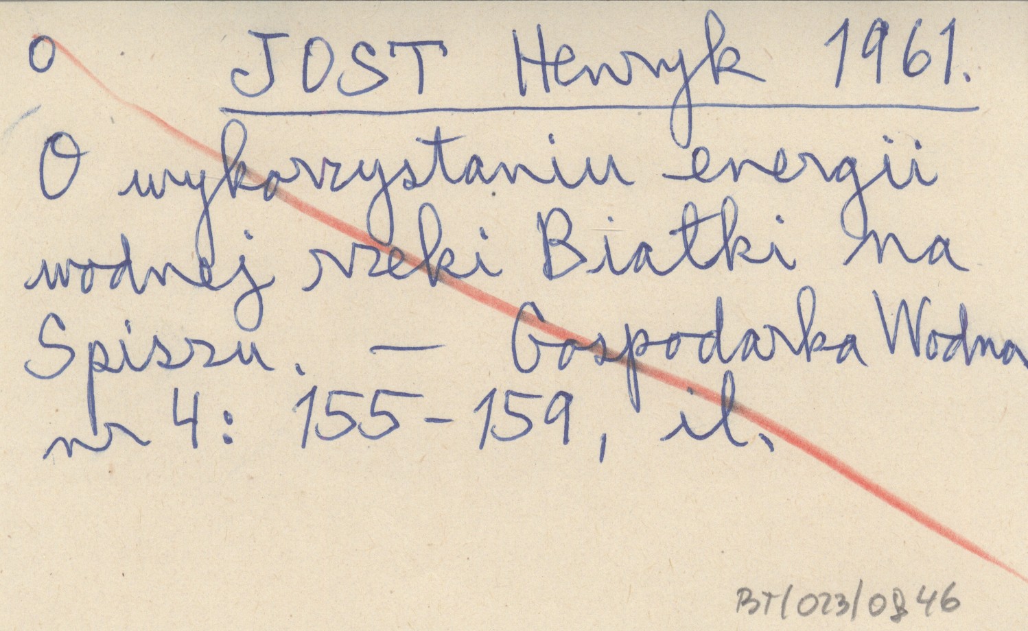 JOST Henryk 1961 O wykorzystaniu energii wodnej rzeki Białki na Spiszu.