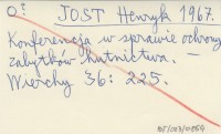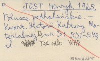 JOST Henryk 1965 Prace nad katalogiem zabytków budownictwa przemysłowego Podhala.