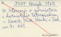 JOST Henryk 1965 W Słowacji o górnictwie i hutnictwie tatrzańskim.