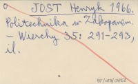 JOST Henryk 1966 Politechnika w Zakopanem.