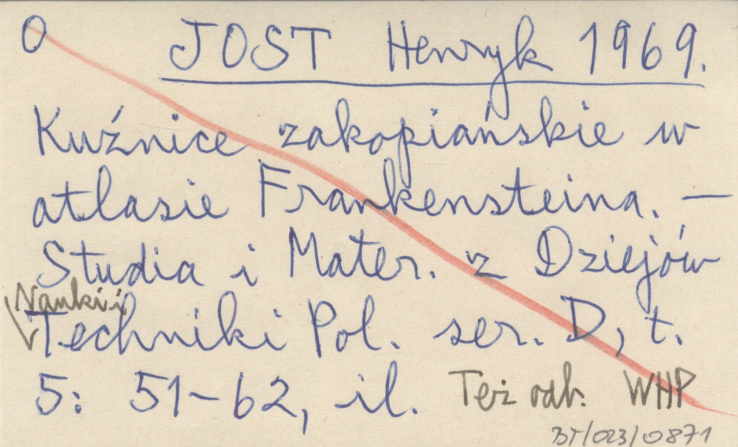 JOST Henryk 1969 Kuźnice zakopiańskie w atlasie Frankensteina.