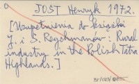 JOST Henryk 1972 [Uzupełnienia do książki J. i S. Reychmanów: Rural industry in the Polish Tatra Highlands].