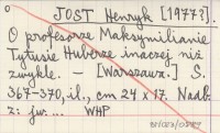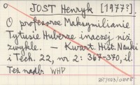 JOST Henryk [1977?] O profesorze Maksymilianie Tytusie Huberze inaczej niż zwykle.