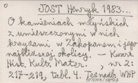 JOST Henryk 1983... O kamieniach młyńskich z umieszczonymi w nich krzyżami w Zakopanem i jego najbliższej okolicy.