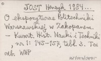 JOST Henryk 1984... O ekspozyturze Politechniki Warszawskiej w Zakopanem.