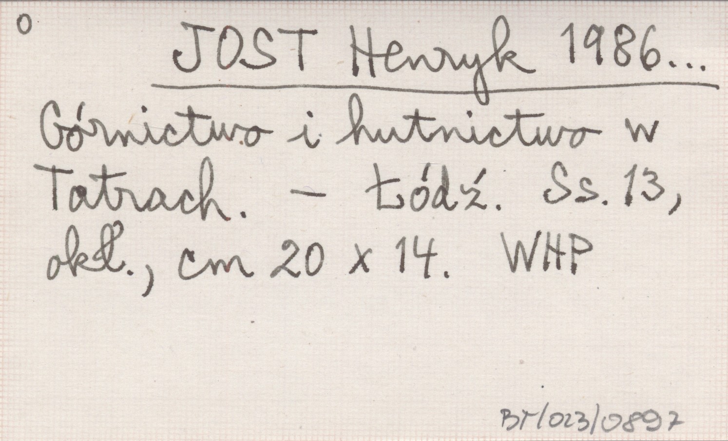 JOST Henryk 1986... Górnictwo i hutnictwo w Tatrach.