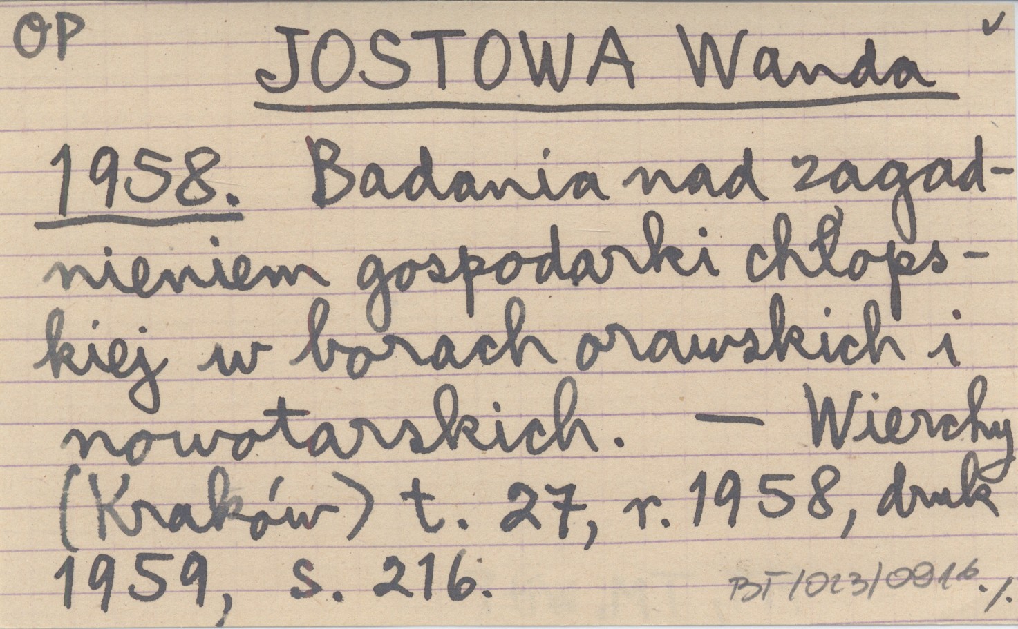 JOSTOWA Wanda 1958 Badania nad zagadnieniem gospodarki chłopskiej w borach orawskich i nowotarskich.