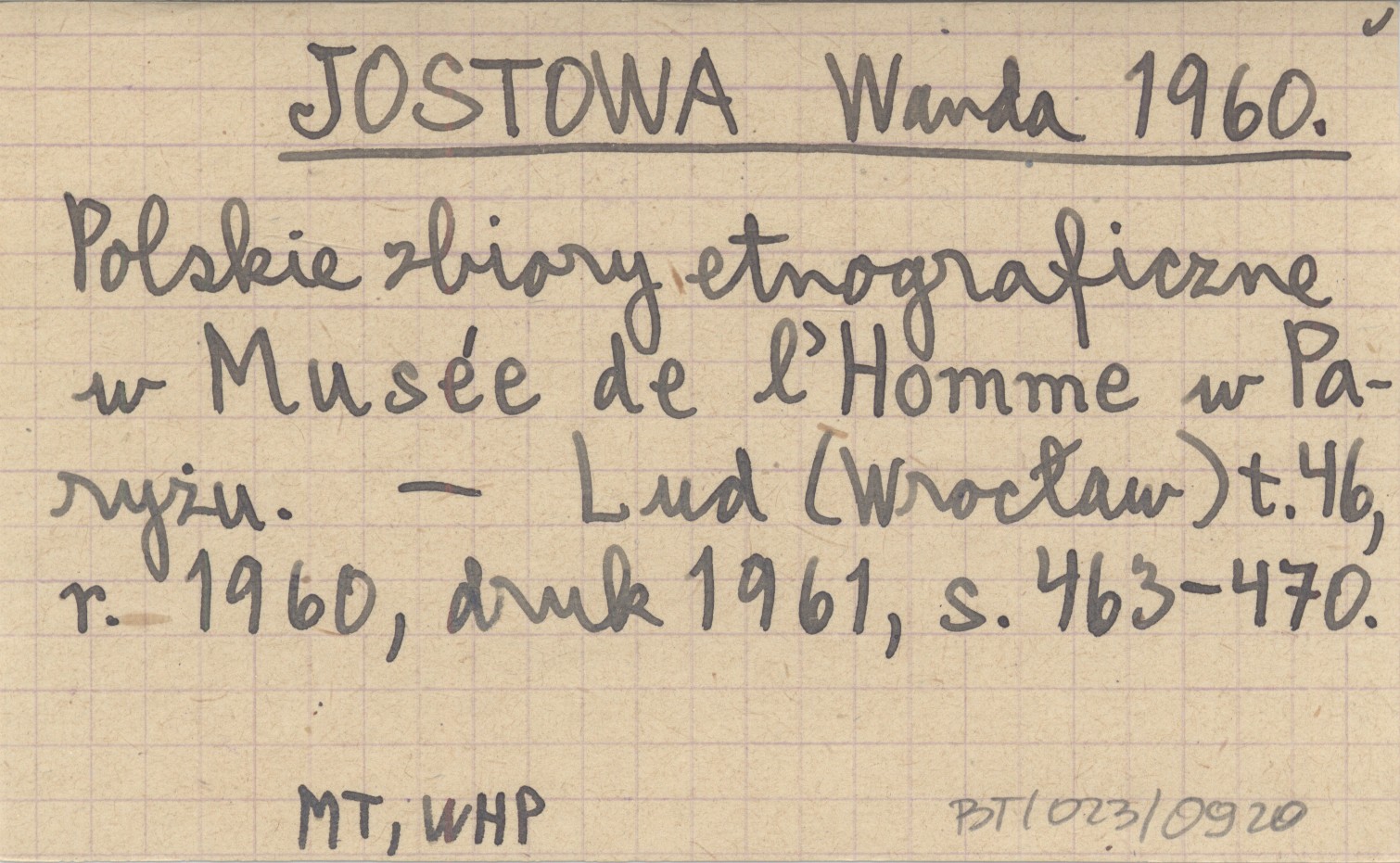 JOSTOWA Wanda 1960 Polskie zbiory etnograficzne w Musée de l'Homme w Paryżu.