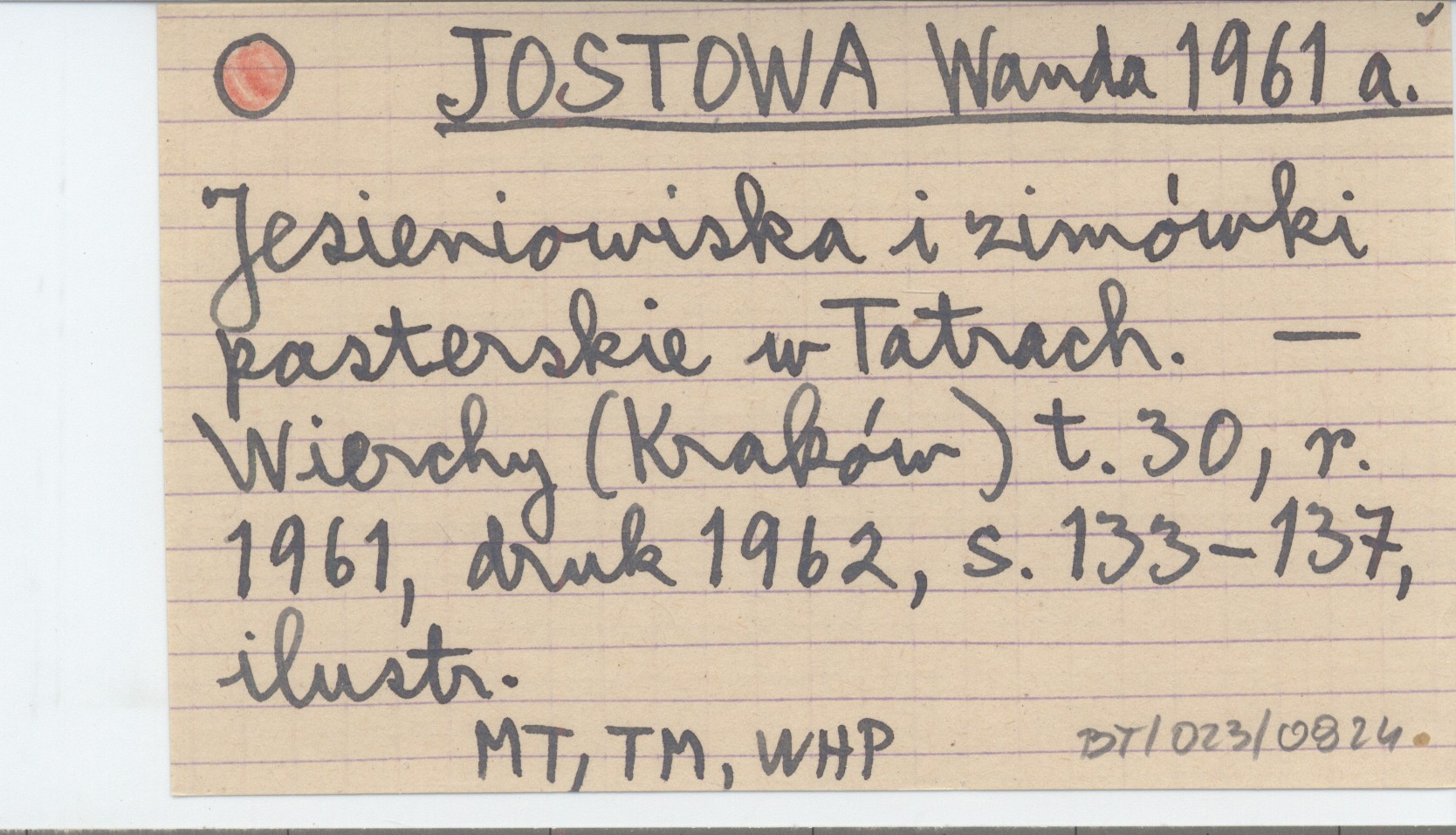 JOSTOWA Wanda 1961 a Jesieniowiska i zimówki pasterskie w Tatrach.