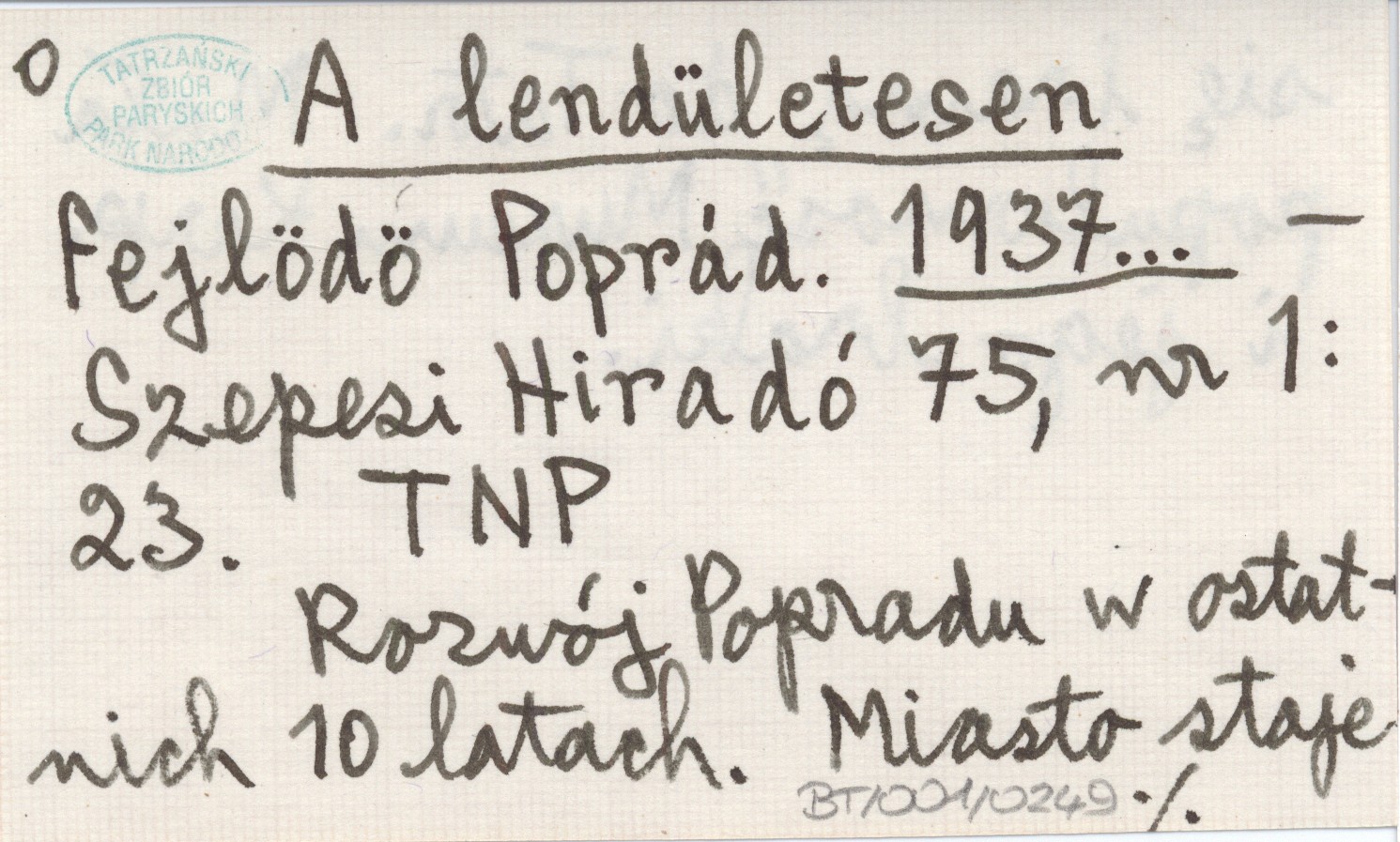 Szepesi Hiradó, 75, nr 1: 23. Rozwój Popradu w ostatnich 10 latach. Miasto staje się bramą do Tatr. Mała popularność Muzeum Karp. i jego braki.