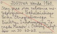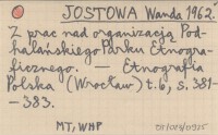 JOSTOWA Wanda 1960 Stan prac oraz założenia metodologiczne Podhalańskiego Parku Etnograficznego.