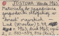 JOSTOWA Wanda 1963 Materiały do zagadnienia gospodarki chłopskiej w "borach" orawskich.