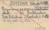 JOSTOWA Wanda 1963 a Muzeum Tatrzańskie.