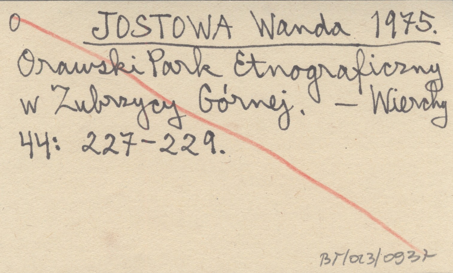 JOSTOWA Wanda 1975 Orawski Park Etnograficzny w Zubrzycy Górnej.