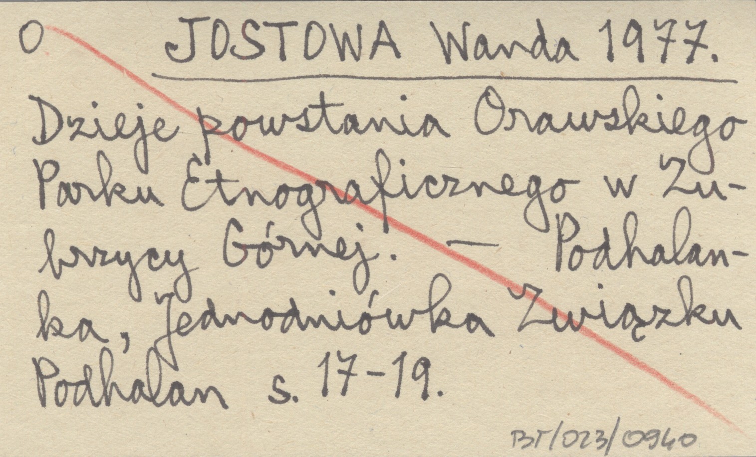 JOSTOWA Wanda 1977 Dzieje powstania Orawskiego Parku Etnograficznego w Zubrzycy Górnej.