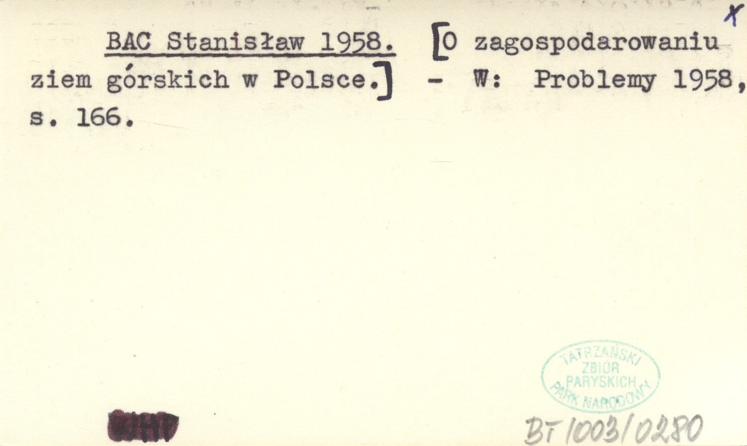 BAC Stanisław 1958 [O zagospodarowaniu ziem górskich w Polsce.]