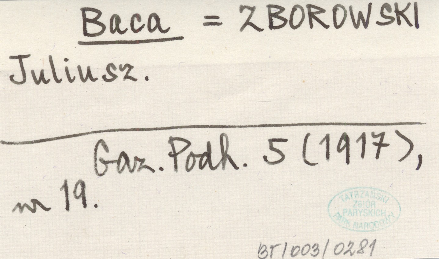 Baca ZBOROWSKI Juliusz Gazeta Podhalańska 5 (1917), nr 19.