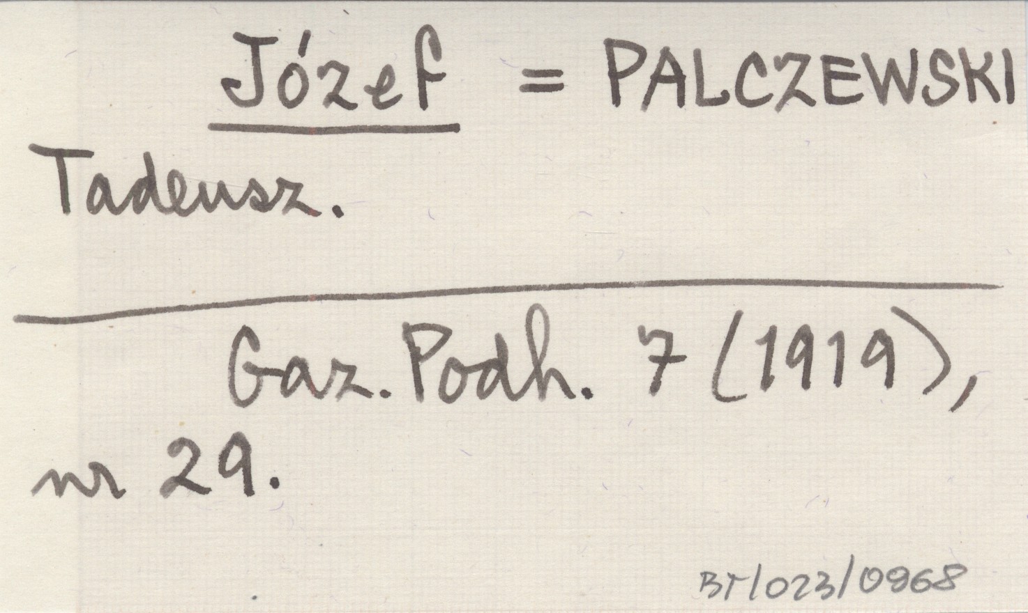 PALCZEWSKI Tadeusz Józef Gazeta Podhalańska 7 (1919), nr 29.