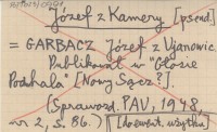 Józef z Kamery GARBACZ Józef z Ujanowic Publikował w "Głosie Podhala" [Nowy Sącz?]. (Sprawozdanie PAU, 1948, nr. 2: 86). [Do ewentualnego użytku].