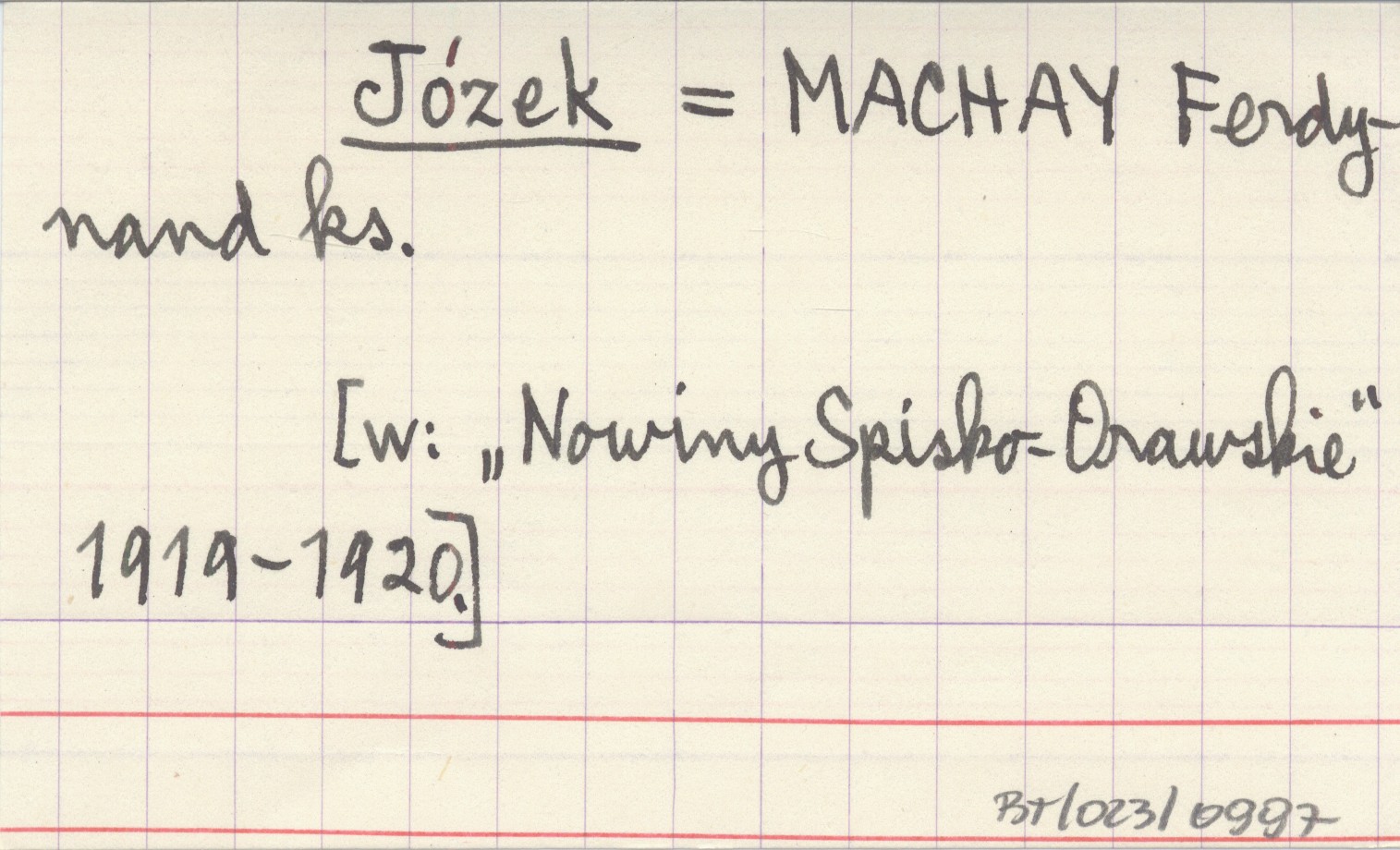 Józek MACHAY Ferdynand ks. [W: "Nowiny Spisko-Orawskie" 1919-1920].