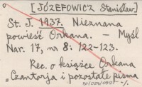 St. J. [JÓZEFOWICZ Stanisław] 1937 Nieznana powieść Orkana.