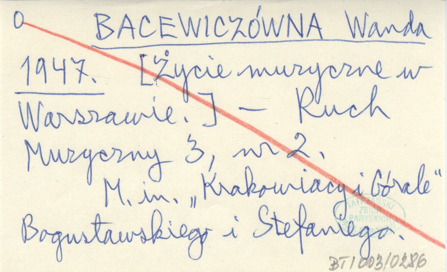 BACEWICZÓWNA Wanda 1947 [Życie muzyczne w Warszawie.]