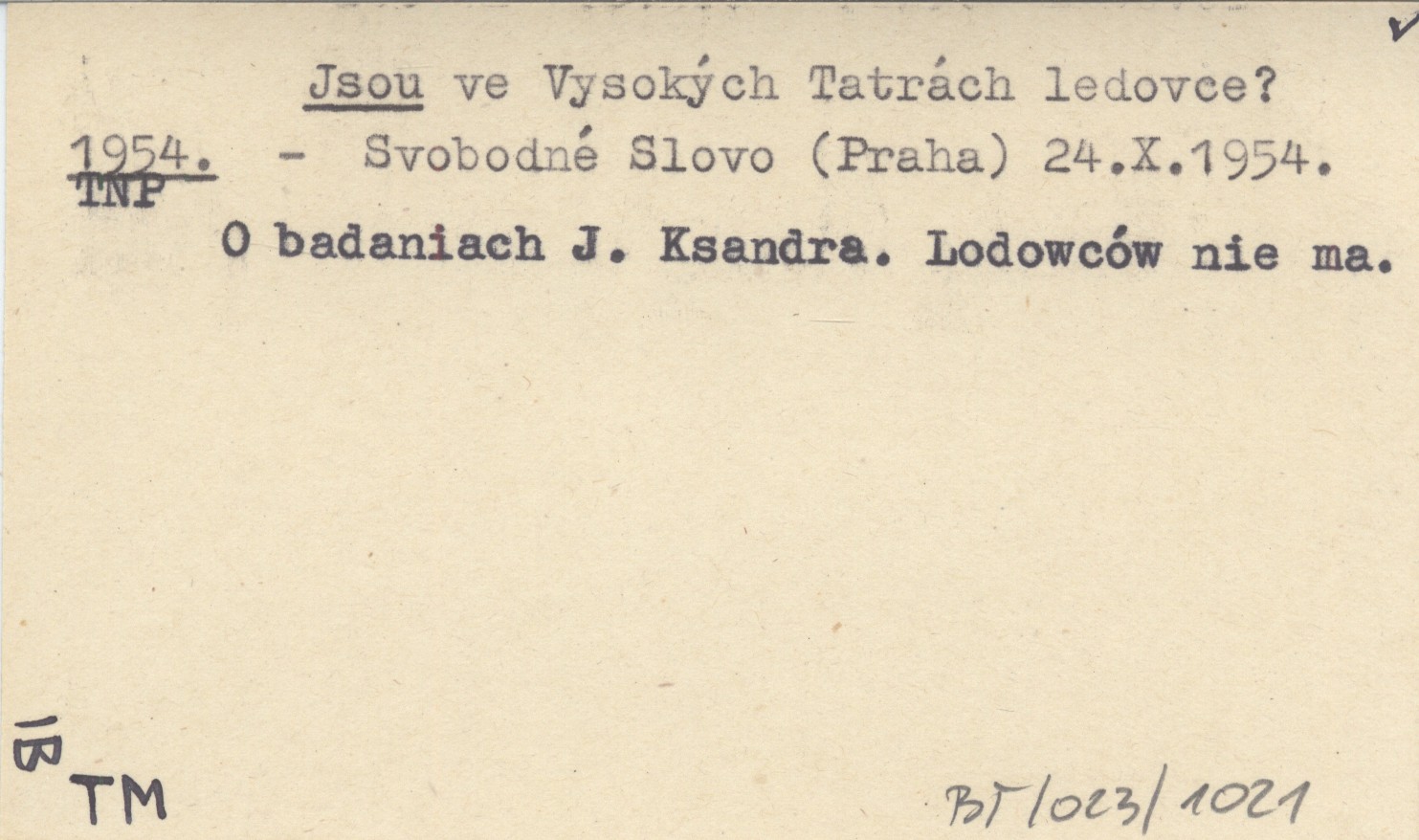 Svobodné Slovo (Praha) , 24.X.1954. O badaniach J. Ksanda. Lodowców nie ma.