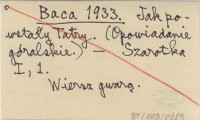 Baca 1933 Jak powstały Tatry. (Opowiadanie góralskie).