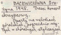 BACEWICZÓWNA Grażyna 1948 Trzeci koncert skrzypcowy.