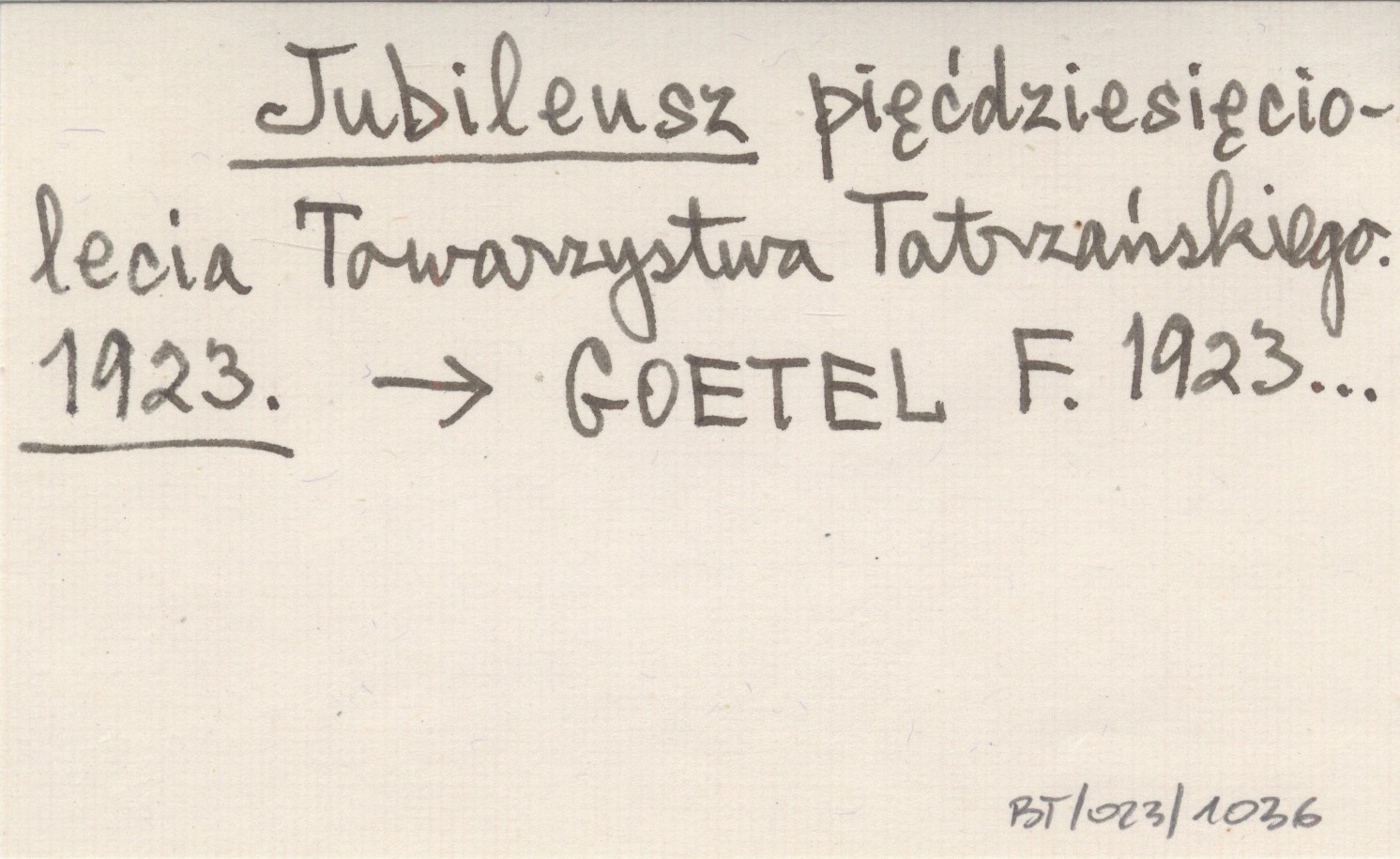 Jubileusz pięćdziesięciolecia Towarzystwa Tatrzańskiego. 1923