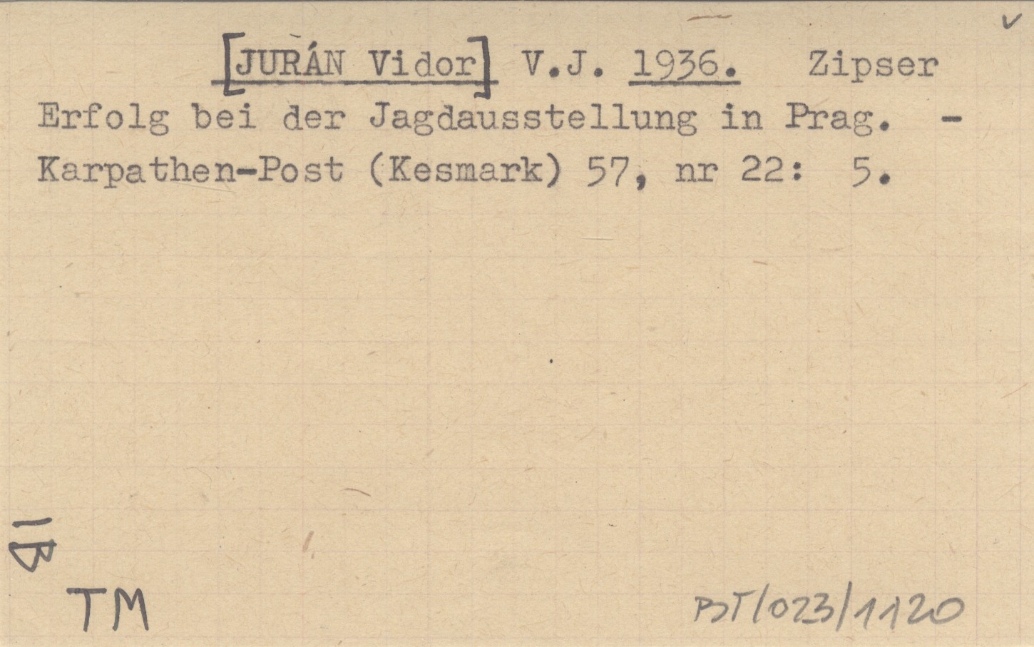 V. J. [JURÁN Vidor] 1936 Zipser Erfol bei der Jagdausstellung in Prag.