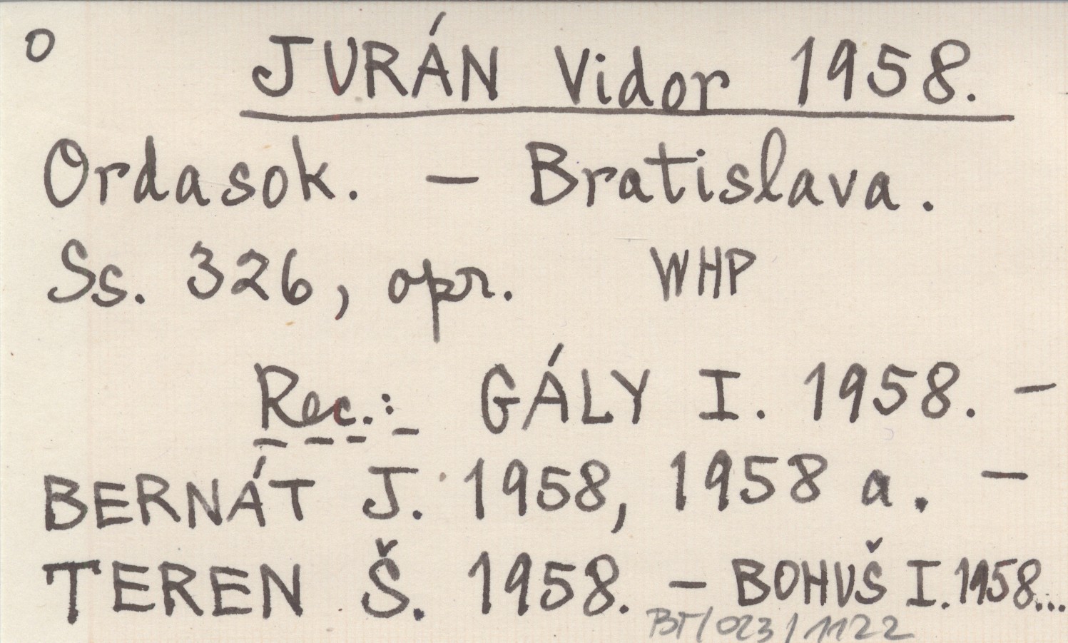 Bratislava , 326 s., opr. REC: GÁLY I. 1958. BERNÁT J. 1958, 1958 a. TEREN Š. 1958. BOHUŠ I. 1958...