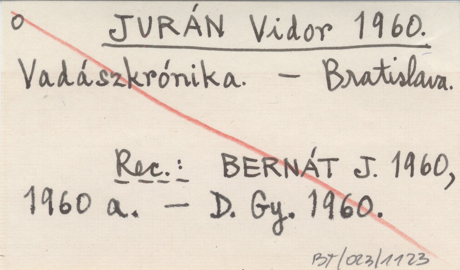 Bratislava , REC: BERNÁT J. 1960, 1960 a. D. Gy. 1960.