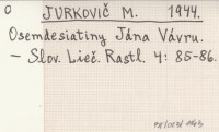 JURKOVIČ M. 1944 Osemdesiatiny Jána Vávru.