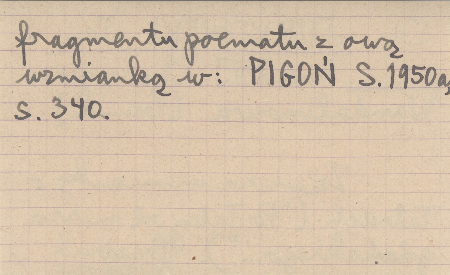 , Zawiera wzmiankę o Tatrach ("Po Tatry od morza gdańskiego..."). Przedruk fragmentu poematu z ową wzmianką w: PIGOŃ S. 1950 a, s. 340. PIGOŃ S. 1950 a, s. 340