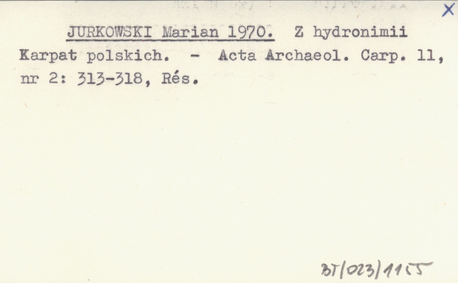 JURKOWSKI Marian 1970 Z hydronimii Karpat polskich.