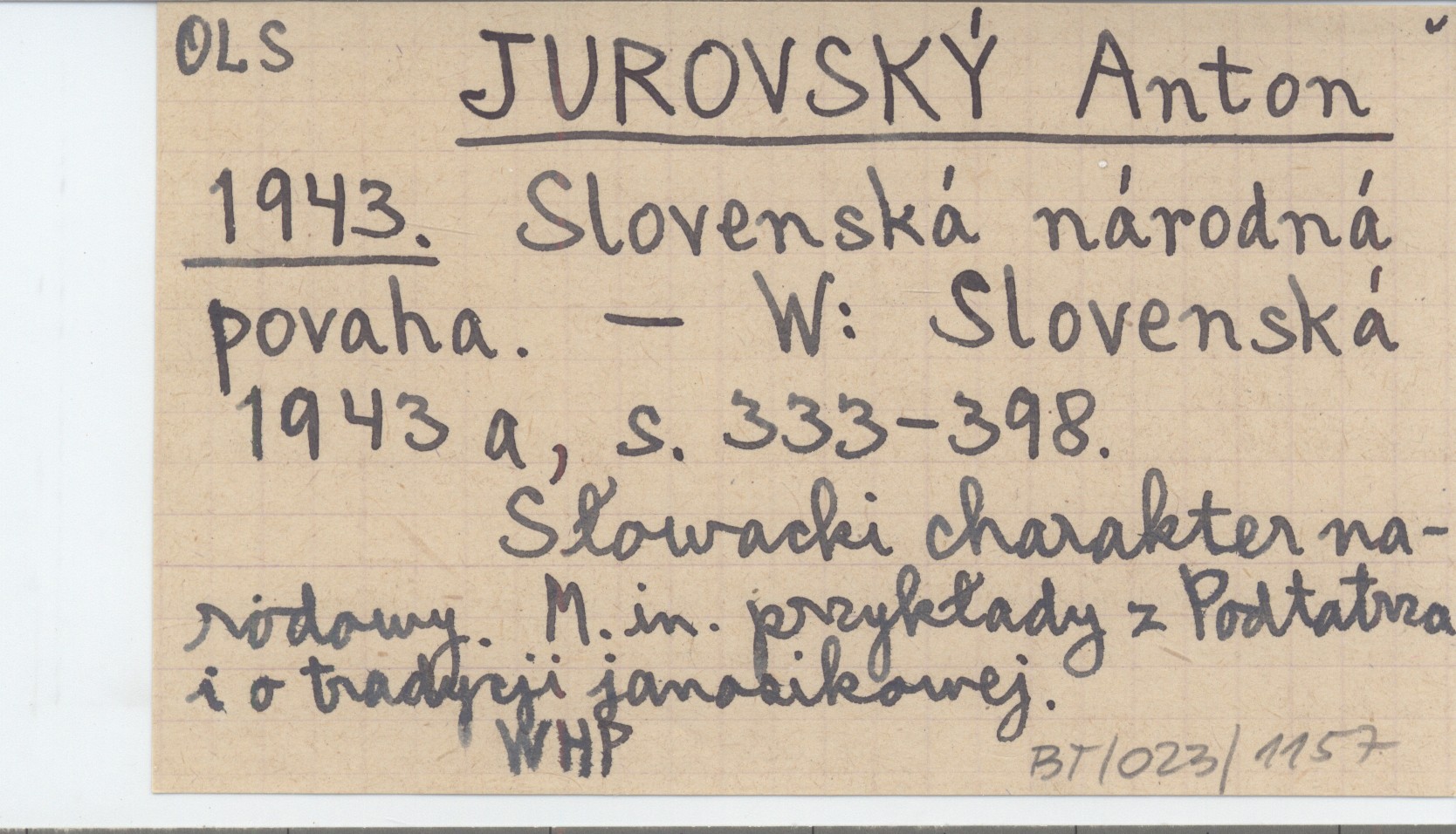 Slovenská 1943 a, s. 333-398. , Słowacki charakter narodowy. M. in. przykłady z Podtatrza i o tradycji janosikowej.
