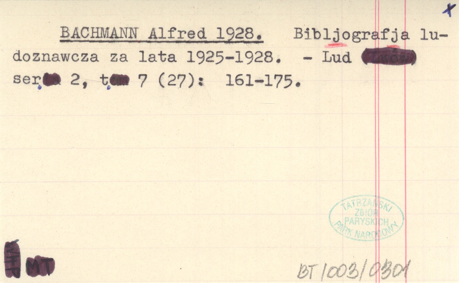 BACHMANN Alfred 1928 Bibljografja ludoznawcza za lata 1925-1928.