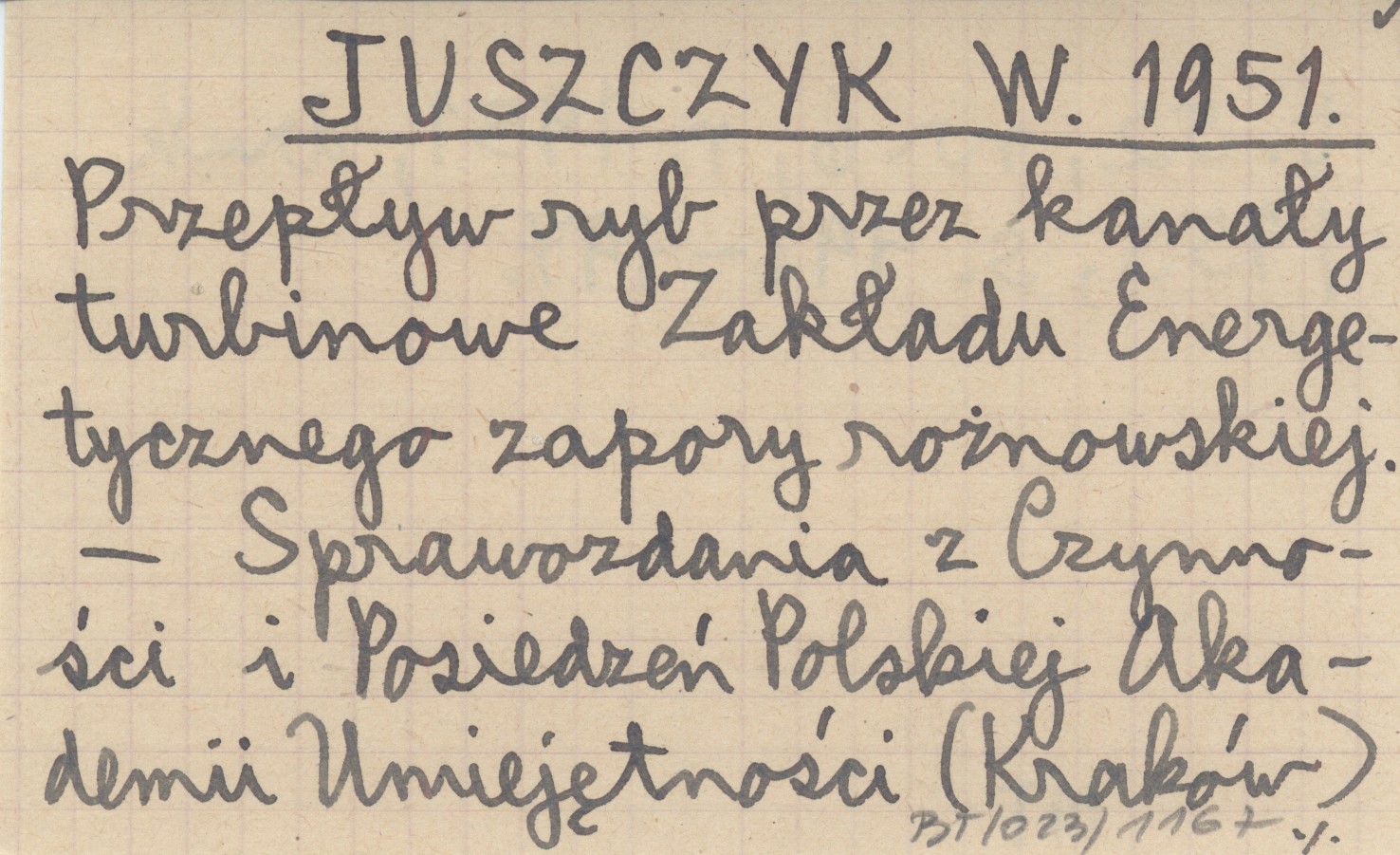 JUSZCZYK W. 1951 Przepływ ryb przez kanały turbinowe Zakładu Energetycznego zapory rożnowskiej.