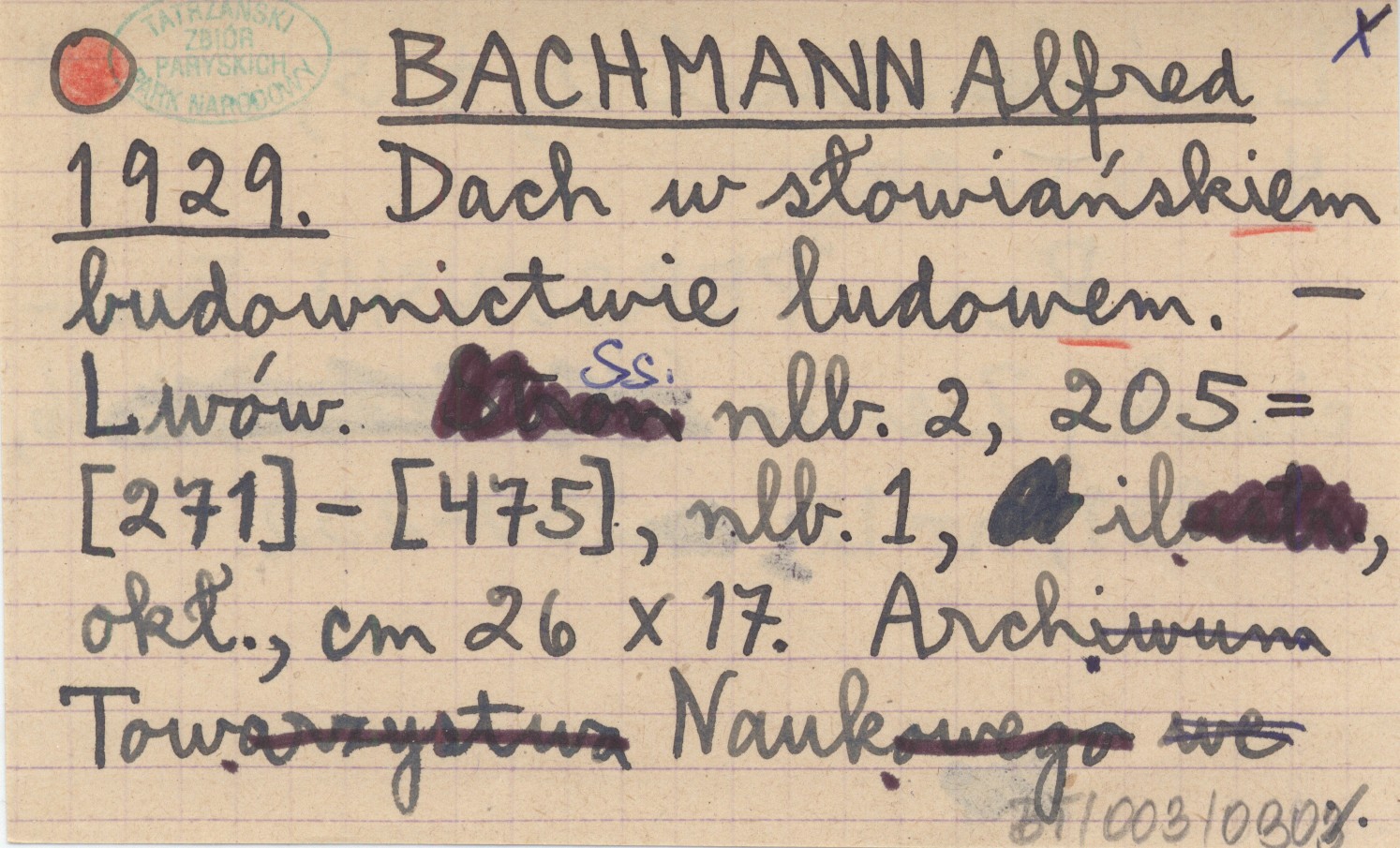 BACHMANN Alfred 1929 Dach w słowiańskiem budownictwie ludowym.