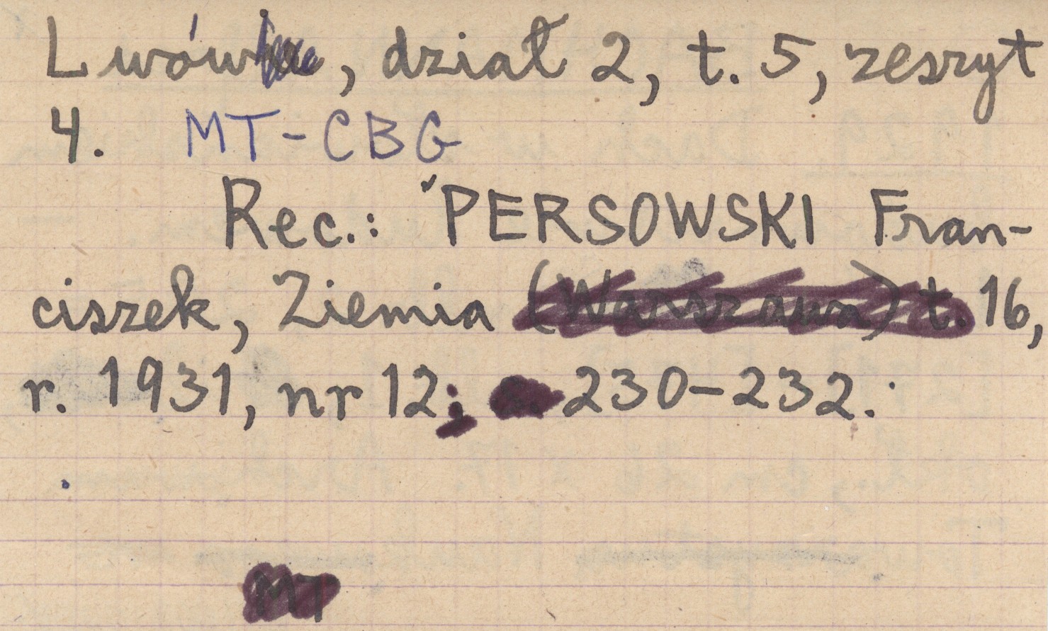 Archiwum Towarzystwa Naukowego, Lwów, dział 2, t. 5, z. 4. Lwów , [1], 205-[271]-[475], [1] s., il. okł., 26x17 cm. REC: PERSOWSKI Franciszek, Ziemia, 16, r. 1931, nr 12: 230-232.