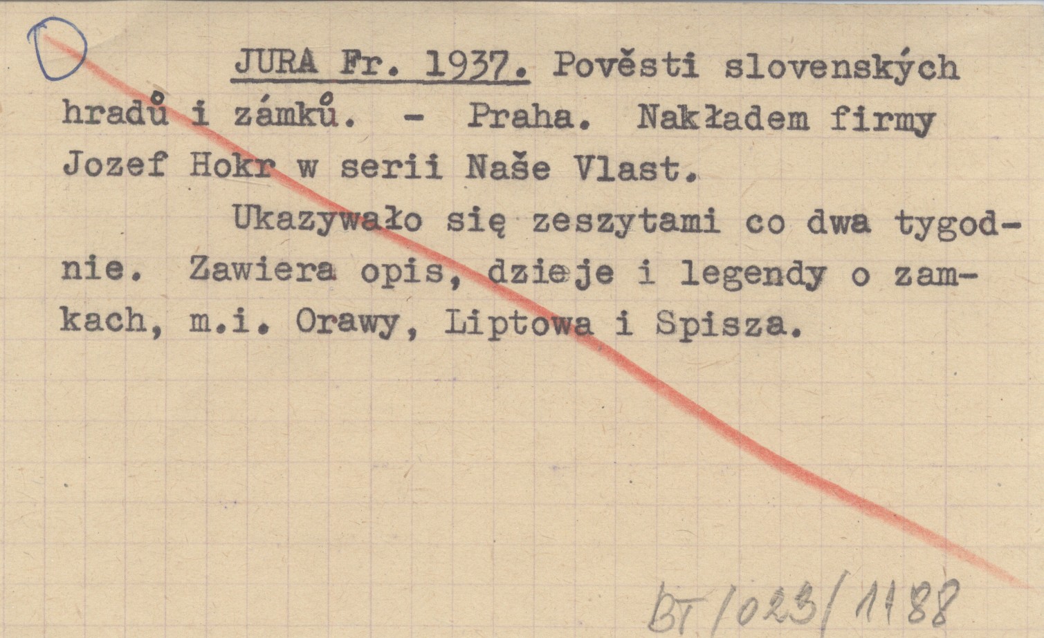 Praha , Ukazywało się zeszytami co dwa tygodnie. Zawiera opis, dzieje i legendy o zamkach, m. in. Orawy, Liptowa i Spisza. Nakładem firmy Jozef Hokr w serii Naše Vlast.