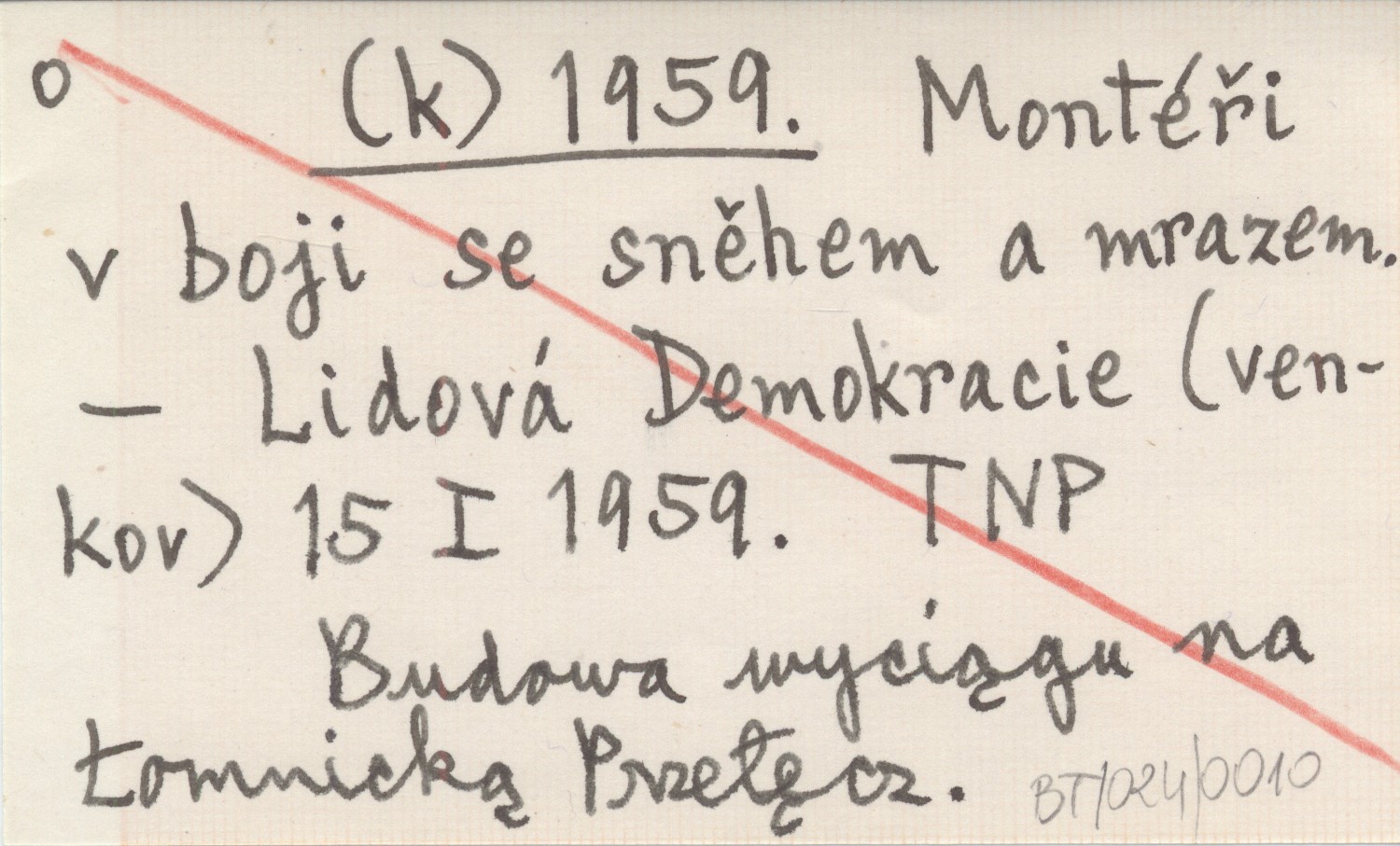 Lidová Demokracie (venkov), 15 I 1959. Budowa wyciągu na Łomnicką Przełęcz.