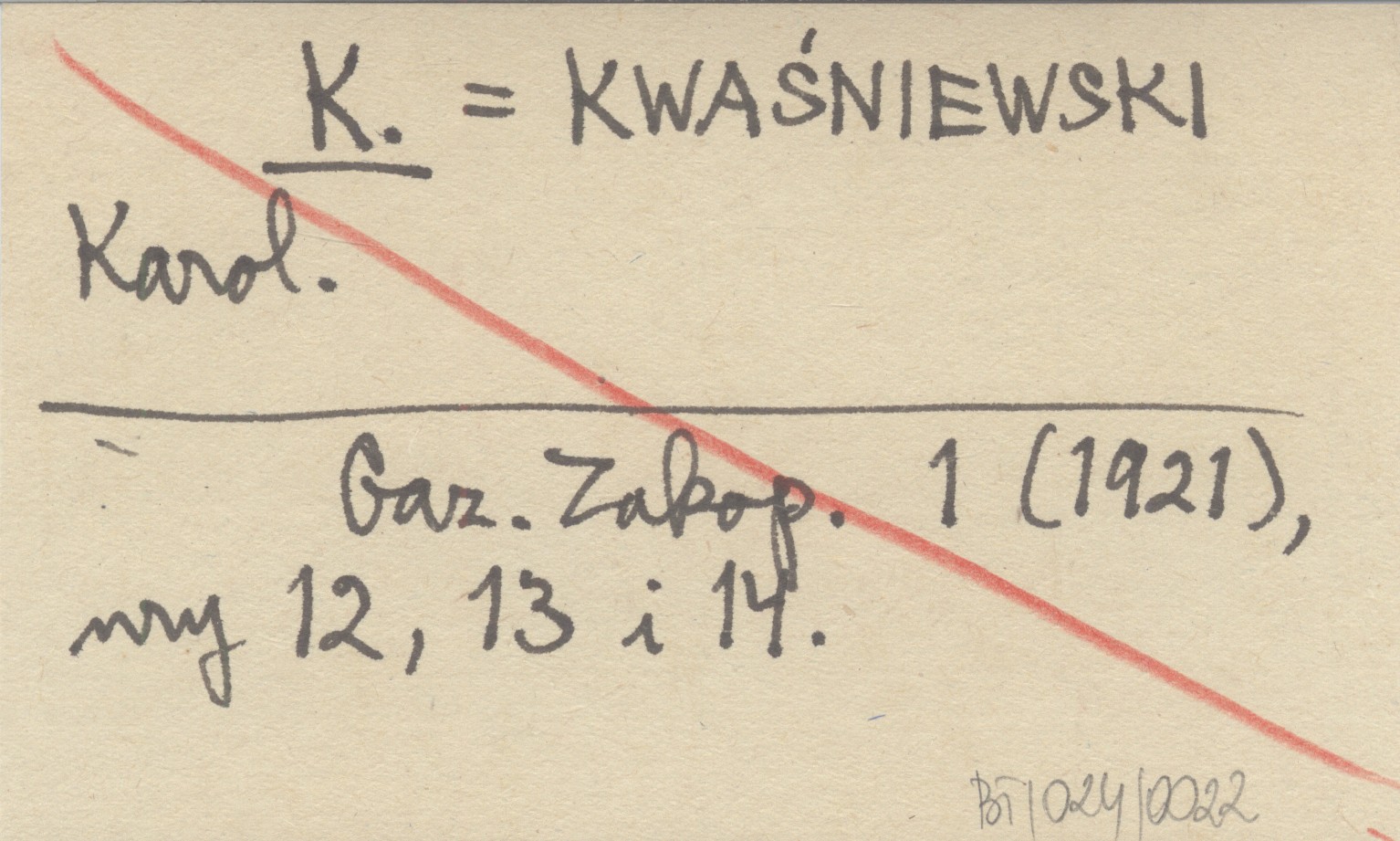 K. KWAŚNIEWSKI Karol Gazeta Zakopiańska 1 (1921), nr 12, 13, 14.