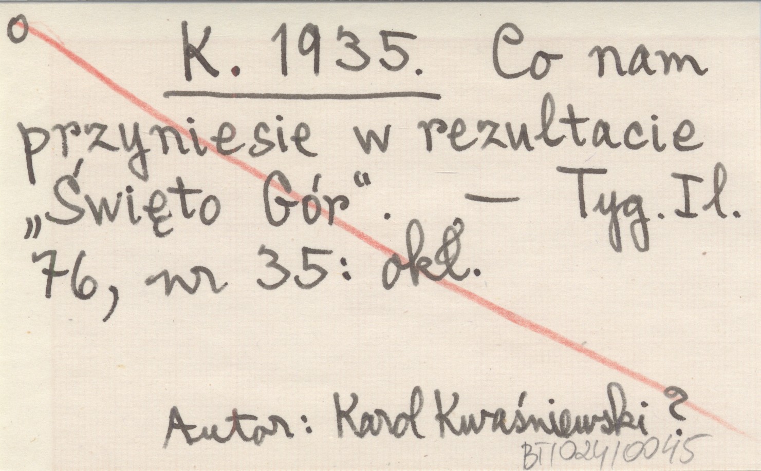 K. 1935 Co nam przyniesie w rezultacie "Święto Gór".