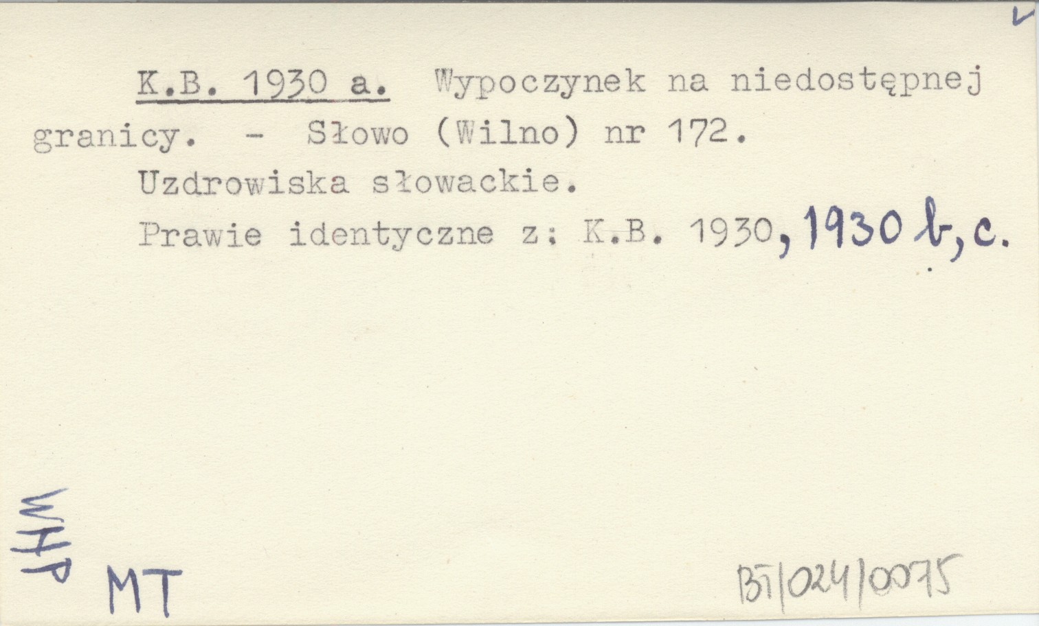 Słowo (Wilno) , Nr 172. Uzdrowiska słowackie. Prawie identyczne z: K.B. 1930, 1930 b, c. K.B. 1930, 1930 b, c