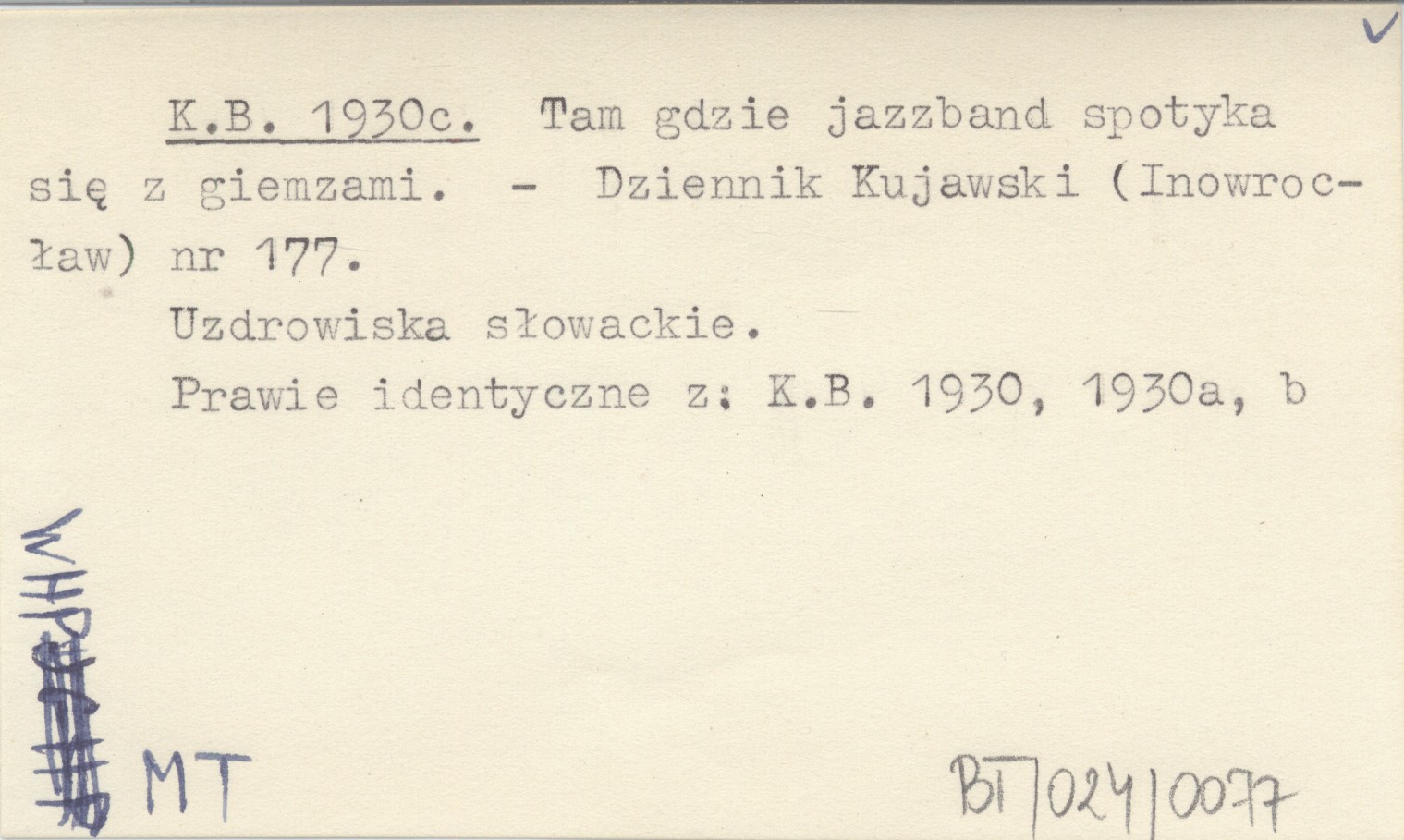 K. B. 1930 c Tam gdzie jazzband spotyka sięz giemzami.